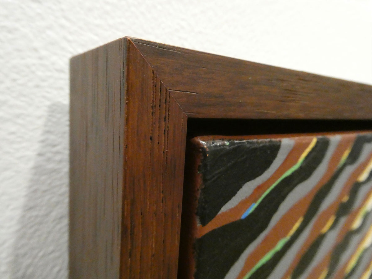 This was originally designed for a mural but after that design became something else, I couldn't stop thinking about it and so I decided to paint it as a canvas instead. I felt very inspired by the beauty of the nature in this area. I really had fun with the atmospheric perspective on the trees in the background, and using all 7 colors on the tree in the front. This is professionally framed with a solid wood frame that compliments the trees.